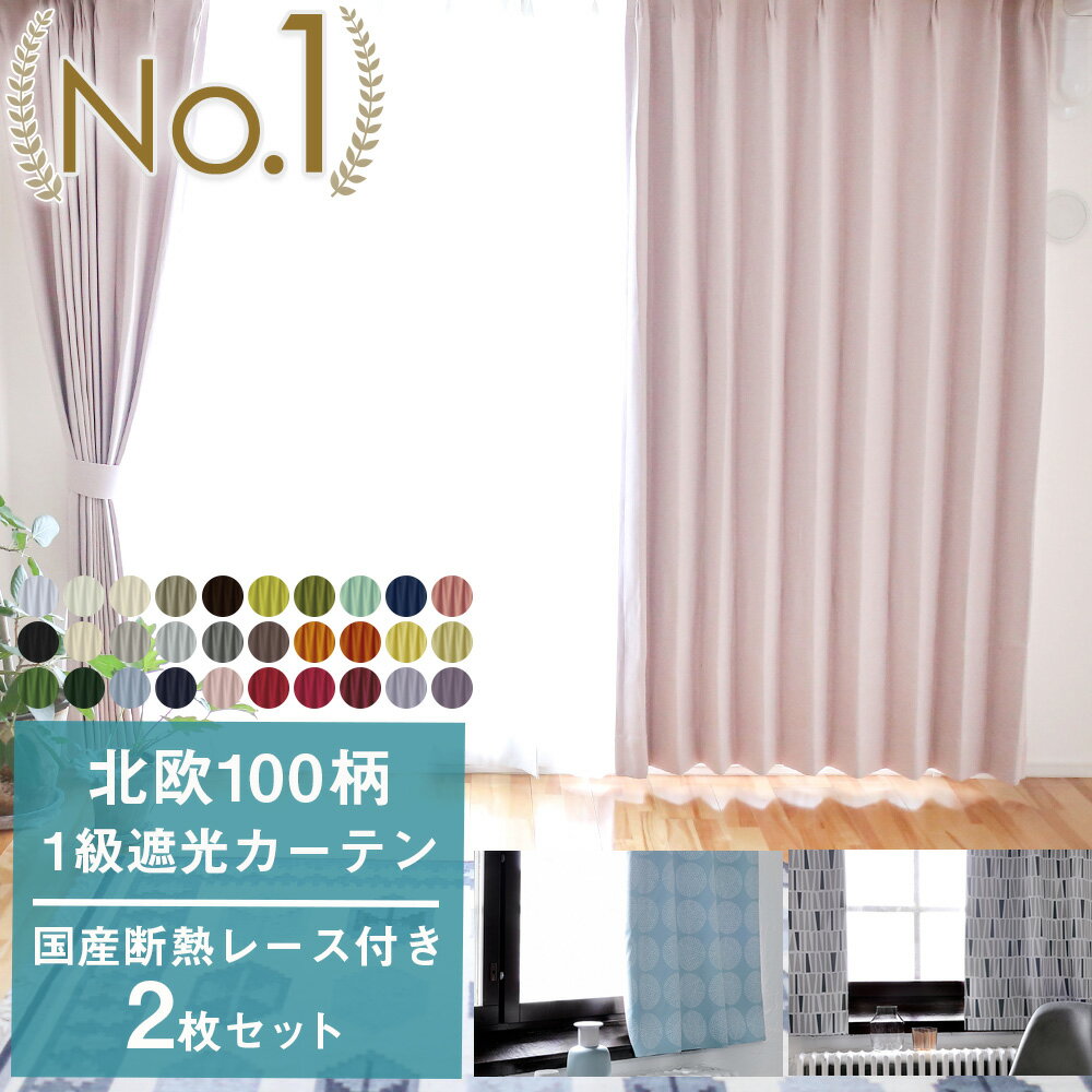 遮光カーテン 1級 【無地44色】【北欧67柄】 北欧 レースカーテン付き 各1枚入りセット 【1cm刻みのオーダーは4,600円から】洗える 断熱 遮音 UVカット 新生活