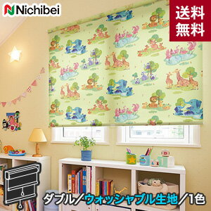【ロールスクリーン】【オーダー19,850円〜】ダブルロールスクリーン ニチベイ ソフィー ダブルタイプ アニマルパーク ウォッシャブル生地__wroll-nichibei-050